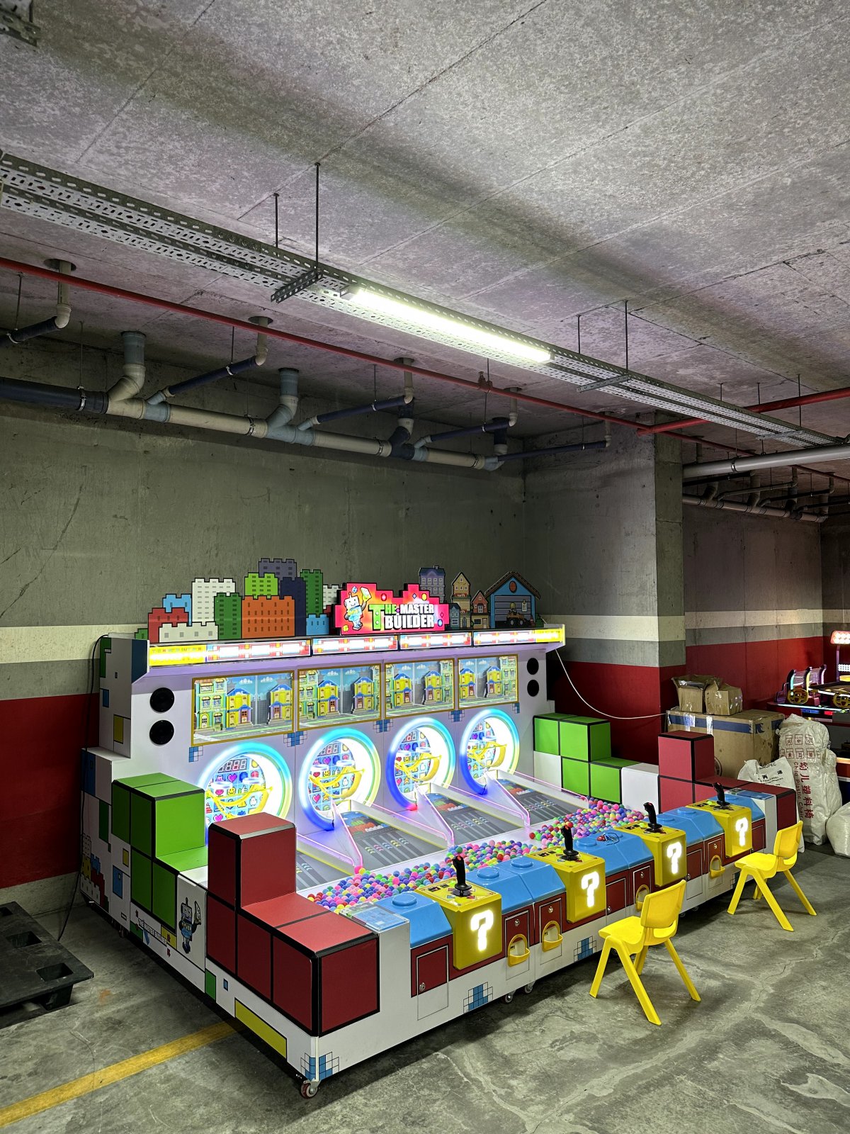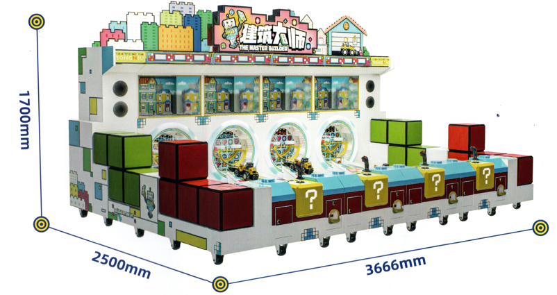 Builder, çocukların mimari hayallerini gerçekleştirmek için tasarlanmış bir oyun cihazıdır. Top havuzundaki enerji topları (masa tenisi topları), inşaat için gerekli olan beton, kum, çelik çubuklar ve su olarak düşünülebilir. Silindir cihazı ise bir karıştırma tamburu olarak düşünülebilir. Çocuklar, topları silindire göndermek için kendi inşaat araçlarını kullanırlar ve ne kadar çok malzeme (puan) toplarlarsa, o kadar çok ev aydınlanır. Basit oyun kontrolleri ve zengin oyun sunumu, cihazlarımızı üretirken asıl amacımızdı ve oyunların basit bilgiler öğretmesine de olanak sağlamayı umuyoruz. ◎ Oyun oynanışına giriş Oynanış Açıklaması ◎ 01- Top İtme Silindiriyle Oynamanın Yeni Bir Yolu Bir forklift kullanarak topu dönen tambura itin. Sürekli dönen tambur, ping-pong topunun düşmeden veya sekmeden önce en yüksek noktasına kadar dönmesine neden olur. Şansınız yaver giderse, tek bir top tek bir oyunda birden fazla kez sayı yapabilir. Şanssızsanız, top yakalayıcı topların çoğunu toplayarak tekrarlanan sayıları önleyecektir. Bu, oyuna daha fazla öngörülemezlik katar ve tekrar oynanabilirliğini artırır. ◎ 02-İlgili bina aydınlatma efekti bileşenleri Oyunda, oyuncunun puanı binaların aydınlatma efektleriyle bağlantılıdır. Cihazın üç puan seviyesi vardır: 300 puan, 600 puan ve 900 puan (bunlar gerektiğinde değiştirilebilir). Biriken puan belirli bir seviyeye ulaştığında, bir bina aydınlanır. 300 puan 600 puan 900 puan ◎ 04- Sürükleyici Ortam Ses Efektleri Oyun içi uyarılar, ödül bildirimleri ve diğer atmosferik ses efektleriyle birlikte gelen oyun, güçlü bir sürükleyicilik, ritim ve deneyim duygusu yaratarak kullanıcıları kolayca cezbediyor ve katılmaya teşvik ediyor. |